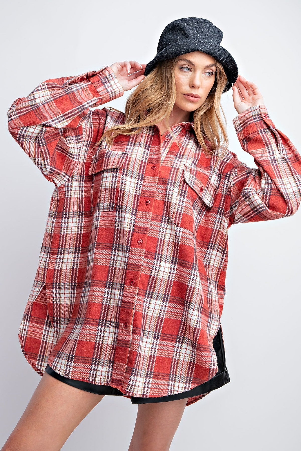 Washed Plaid Button Down Shirt